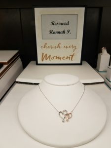 June 9, what would have been Charlotte’s third birthday, Jeremey received the custom piece and reserved it for Hannah. Deanna brought Hannah up to the jewelry store to show her the piece and told Hannah she was receiving it as a gift.